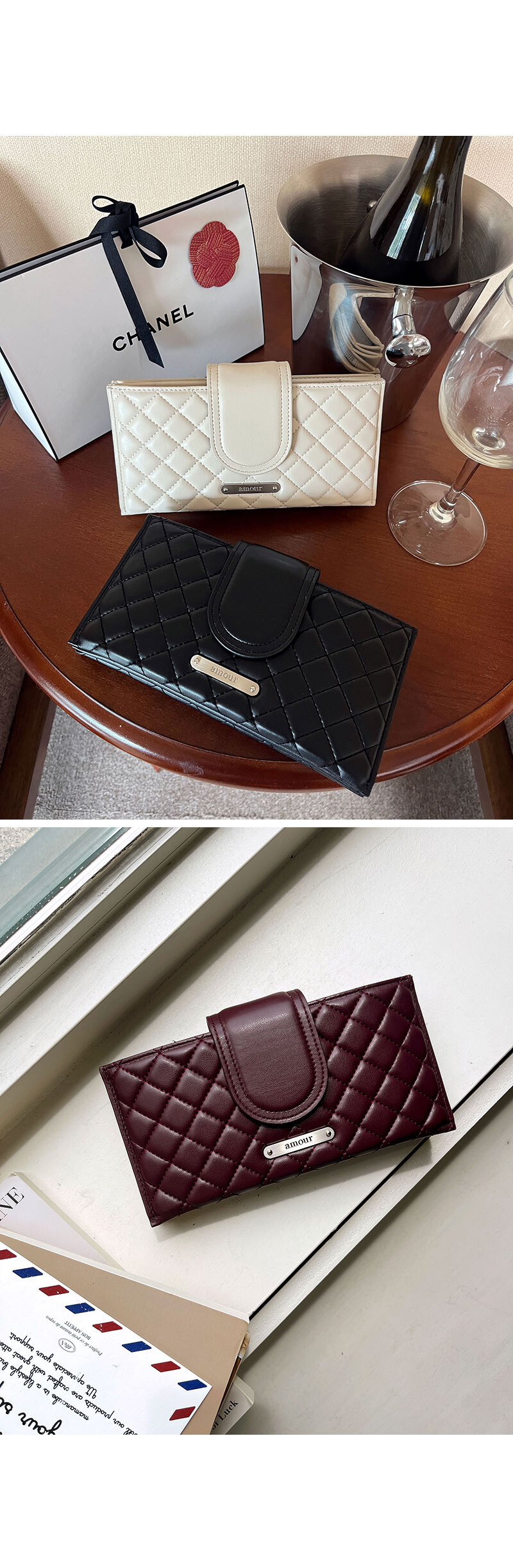 「amour」在法文代表「愛」,全系列以經典菱格 Quilting 設計打造,
