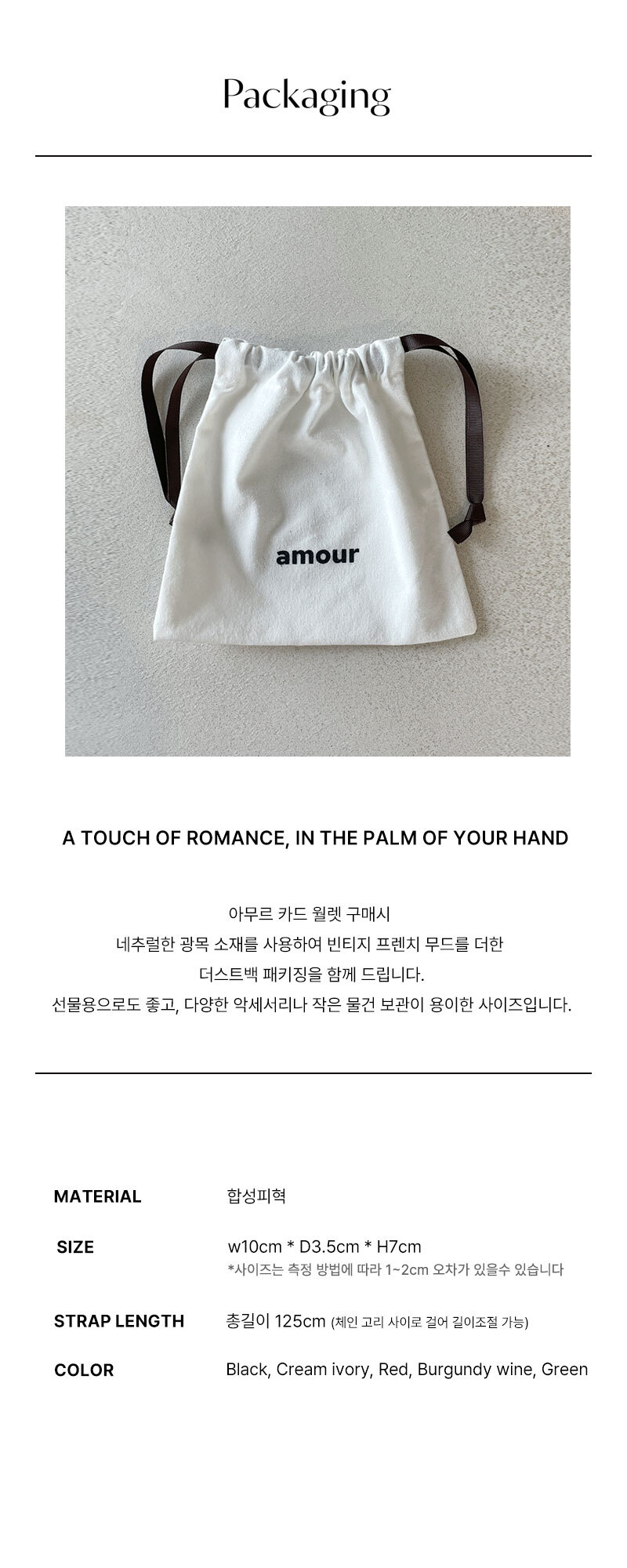 每款 amour 卡套均附上專屬束口塵袋,