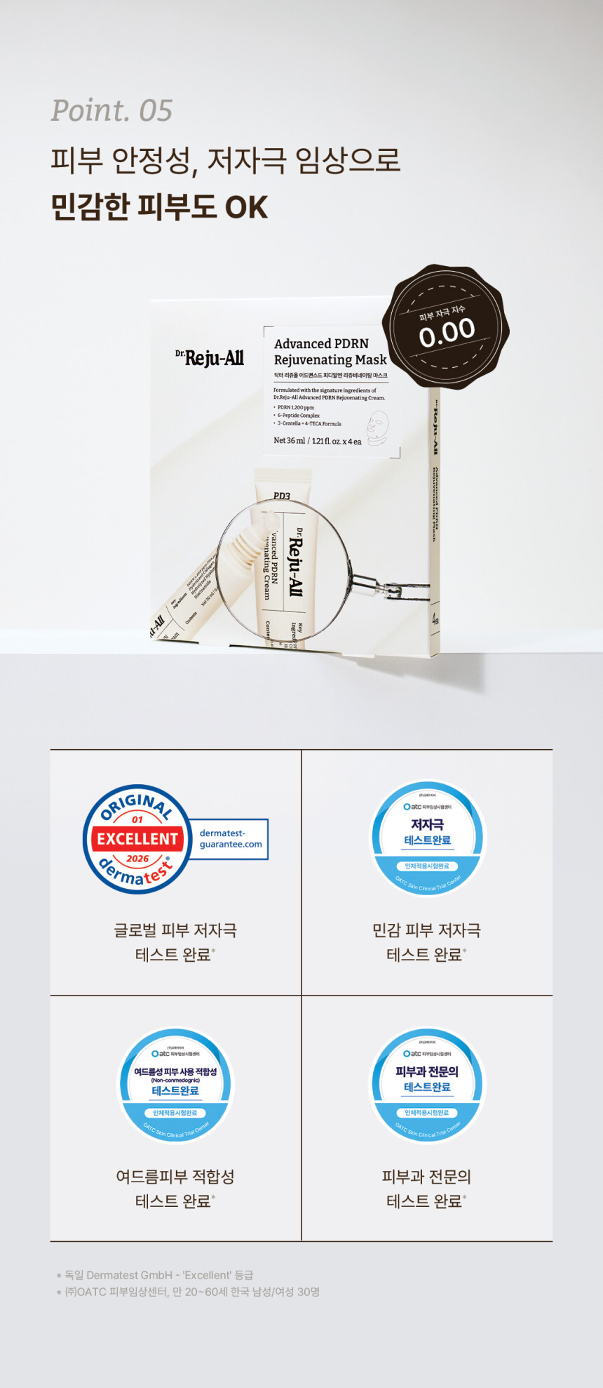 完成全球低刺激測試、Dermatest Excellent 等級、敏感肌測試與皮膚科專業測試。