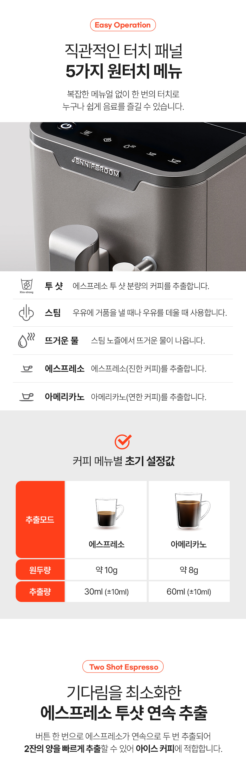 | 模式 | 咖啡燈 | 預浸潤 | 自動斷電 |